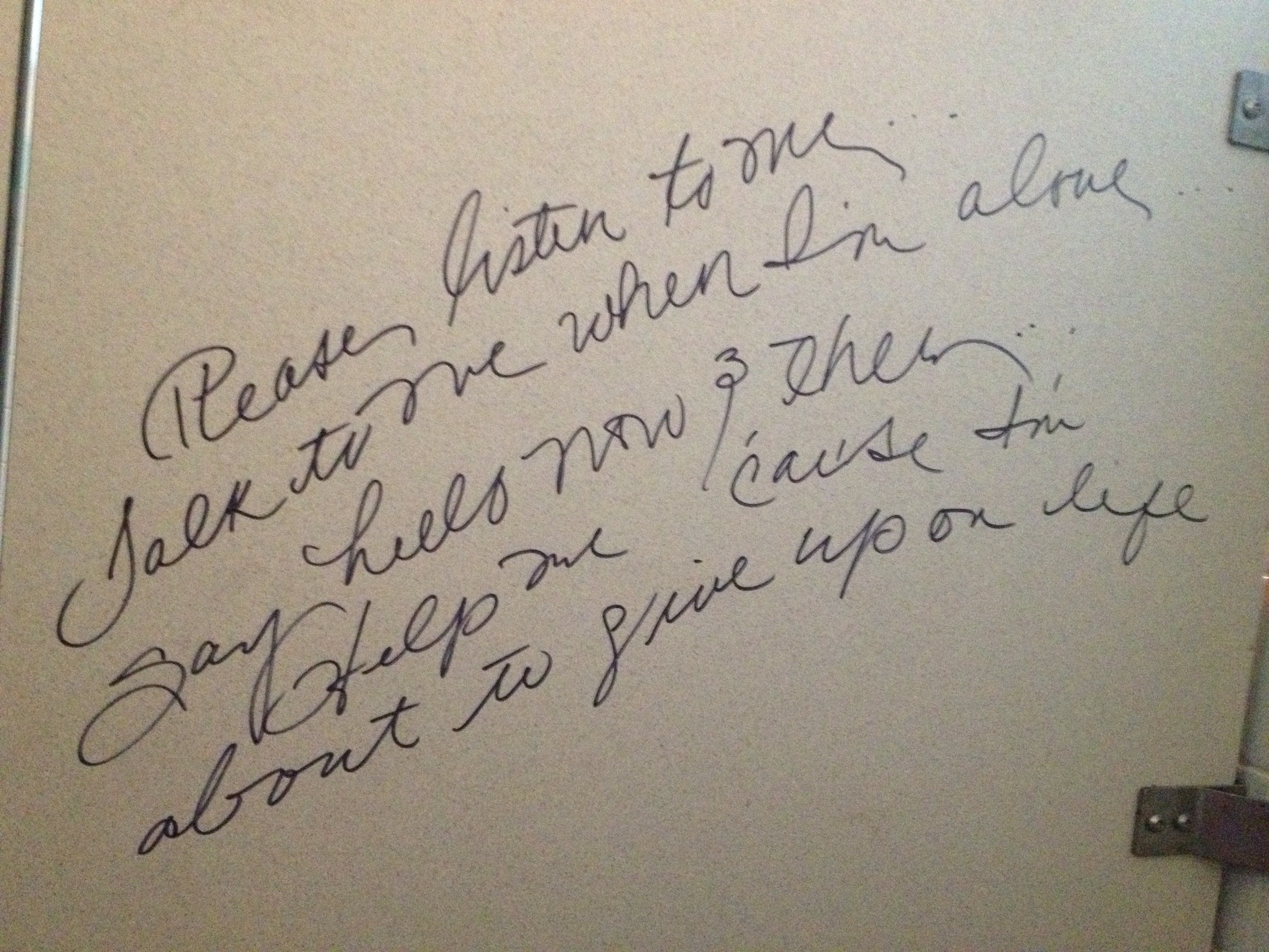 I left the stall looking for the woman who wrote this, wanting to give her a hug, to tell her everything was going to be alright, to send her towards an agency or someone who could help her find her way again but she was nowhere to be seen.